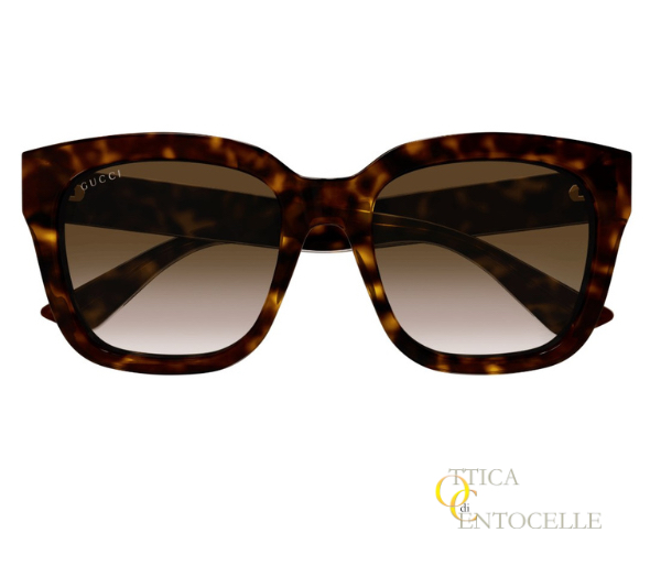 Occhiale da sole da donna Gucci mod. GG1338S. Montatura quadrata interamente leopardata. Sulle aste spicca la doppia "G" intrecciata del logo. Bellissime le lenti marroni.