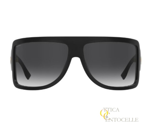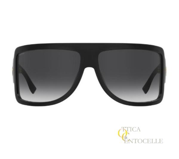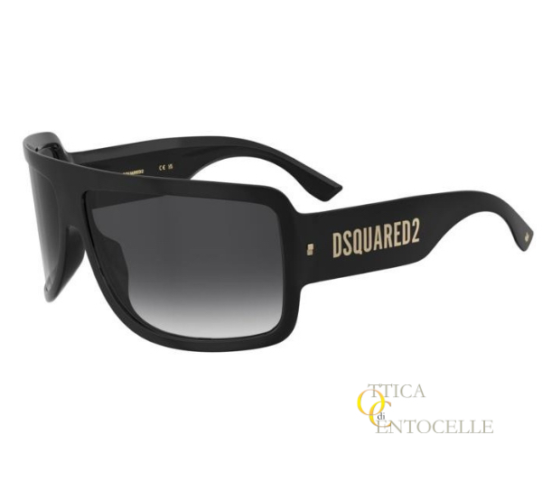 Occhiale da sole da uomo Dsquadred2 mod. D20164. Maschera enorme color nero e lenti fumè sfumate. Logo con il brand sulle aste color oro (disponibile anche in argento). Ideale per chi cerca la distinzione.